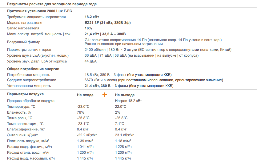 Модель 550 Lux с VAV и увлажнителем воздуха, зимний период