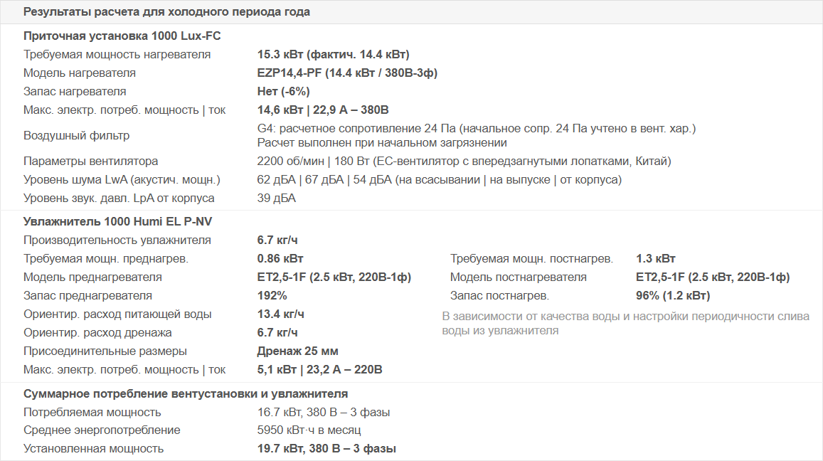 Модель 550 Lux с VAV и увлажнителем воздуха, зимний период