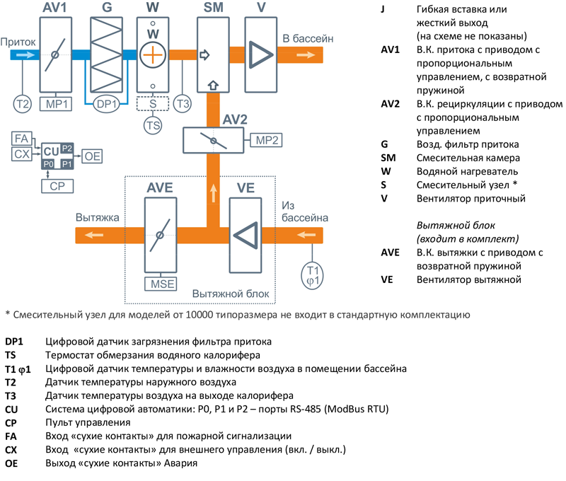 Приточно-вытяжные установки серии Aqua Pool Mix предназначены для создания бюджетной системы вентиляции бассейна, которая может поддерживать: