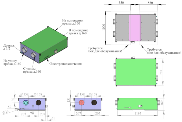 Также вентустановки оснащены байпасом для обхода рекуператора в теплое время года, когда рекуперация не требуется.
